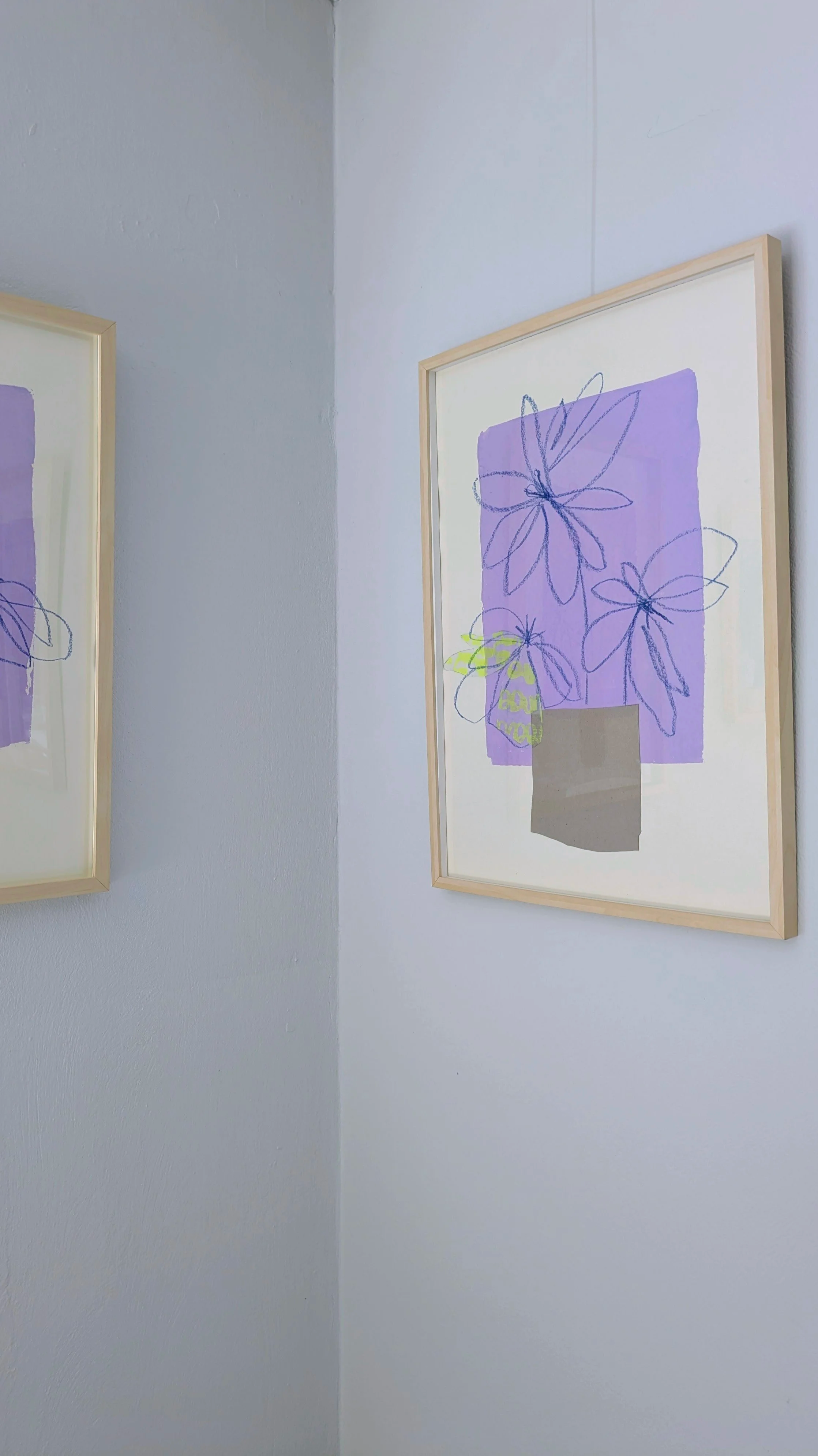 Gezeigt werden Arbeiten, die im Sommer 2025 entstanden sind. Inspiriert von Blüten habe ich für meine Studien und mit verschiedenen Techniken wie Siebdruck, Zeichnung, Malerei oder Collage die Schönheit der Vergänglichkeit in den Fokus gerückt. Blüten von Fresien, Tulpen und Pfingstrosen, die sich nach dem Prozess des Erblühens in Gestalt und Farbe erneut transformieren.